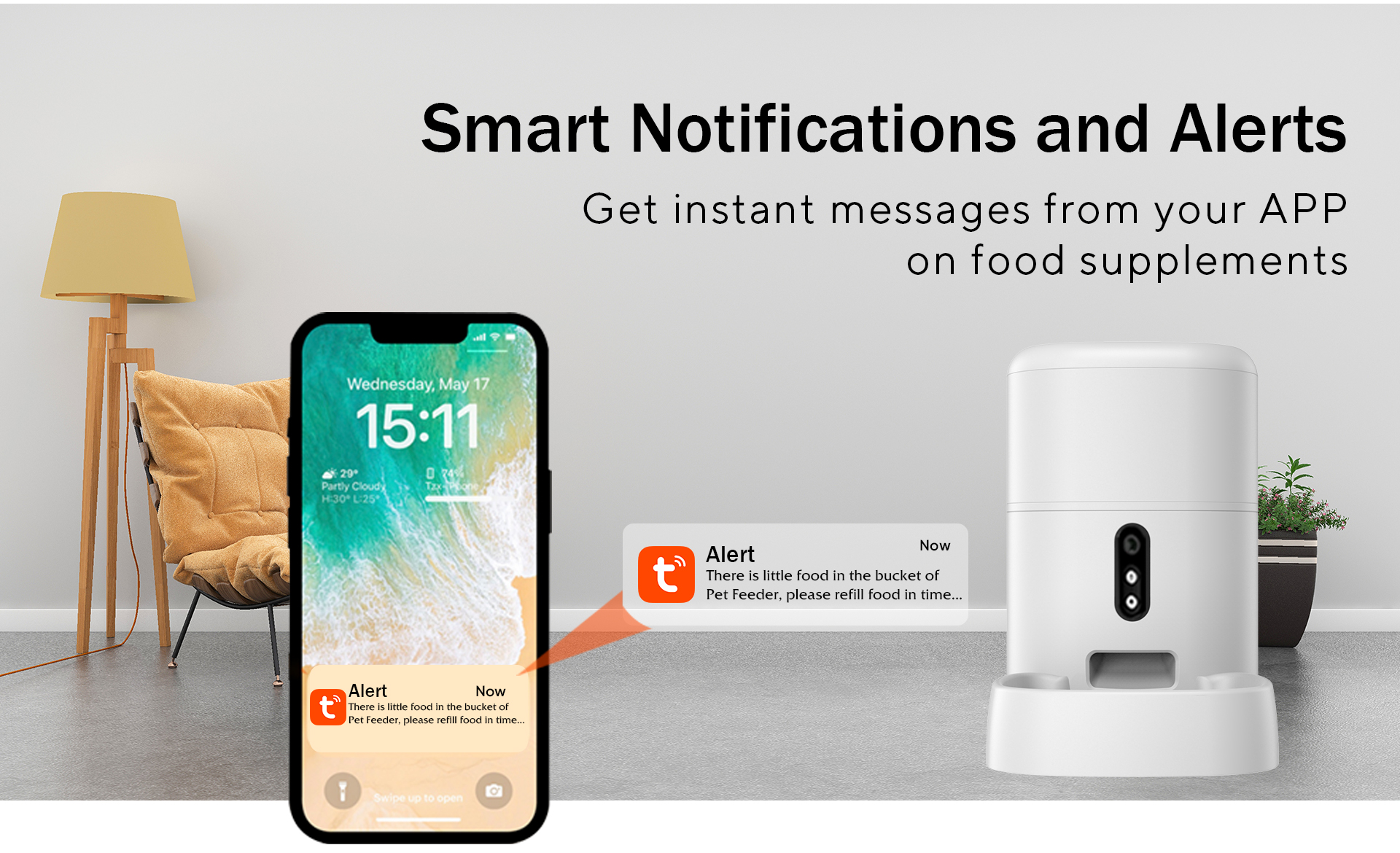 - App Features: Schedule feeding, live video, record, screenshot, playback, push notification